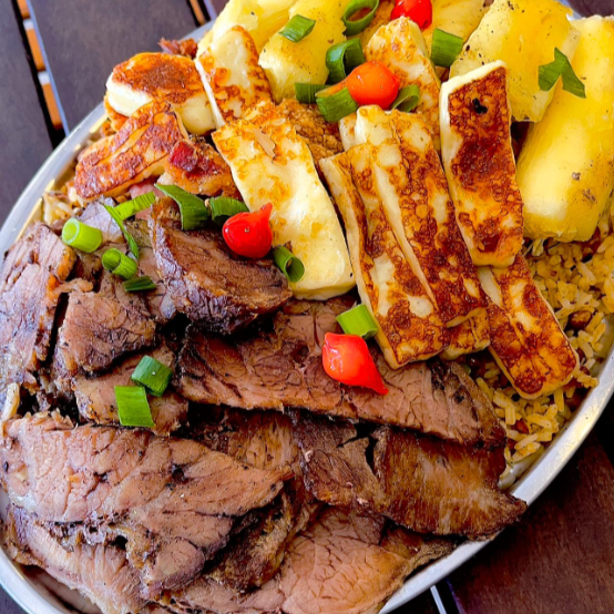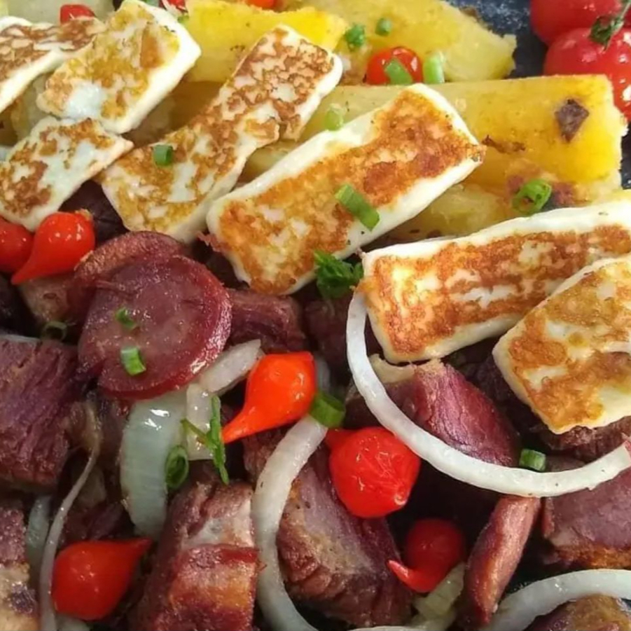 Baião , cupim asado , mandioca e queijo coalho (acompanha salada )