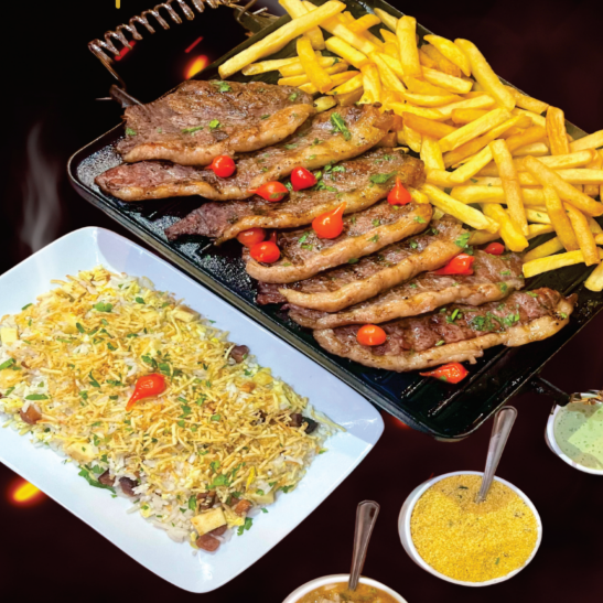 Acompanha Arroz Biro-Biro , Batata Frita e Vinagrete , Farofa e Molho