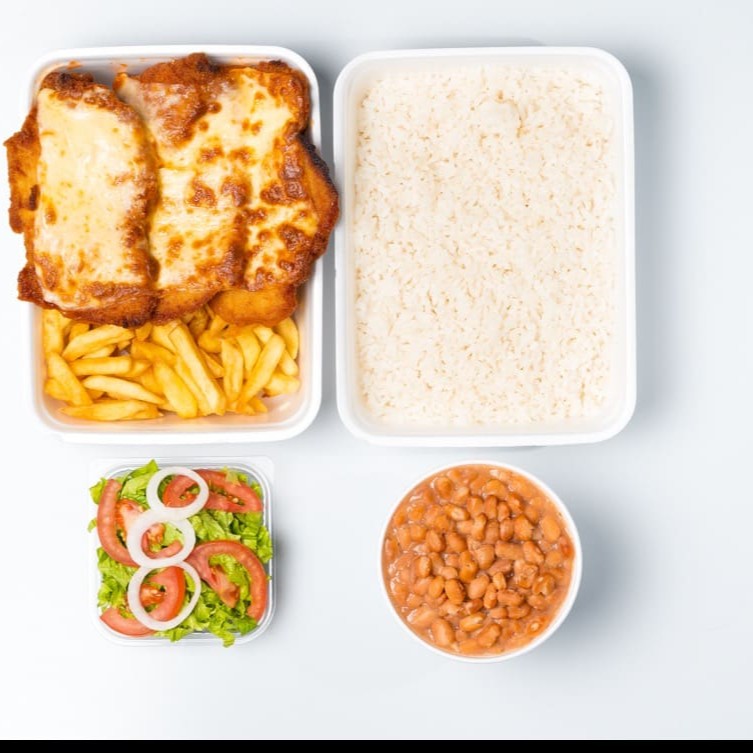 Aproveite nossa oferta do Dia com até 50% de desconto! Nossa deliciosa 'Marmita-Frango à Parmegiana Individual' é uma verdadeira explosão de sabores. O prato é composto por um suculento frango à parmegiana, cuidadosamente preparado e coberto com um queijo derretido irresistível. Para acompanhar, escolha entre um arroz fresquinho e um feijão caseiro, ambos preparados com carinho, ou opte por uma sa