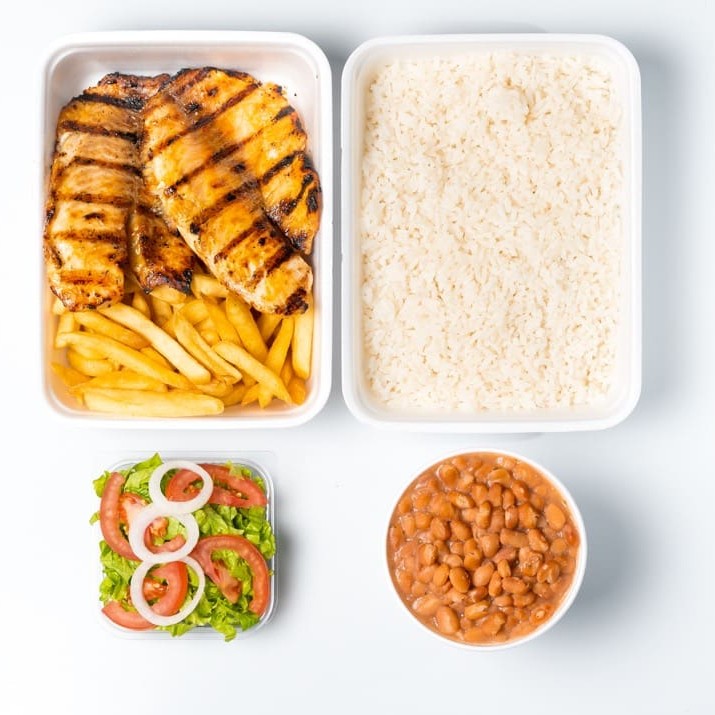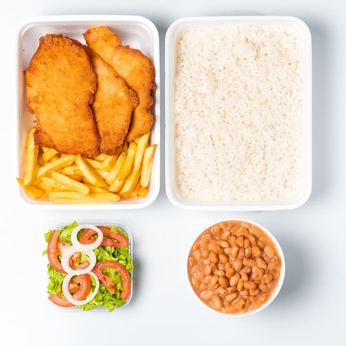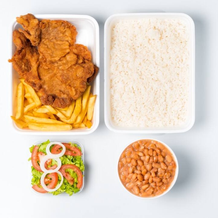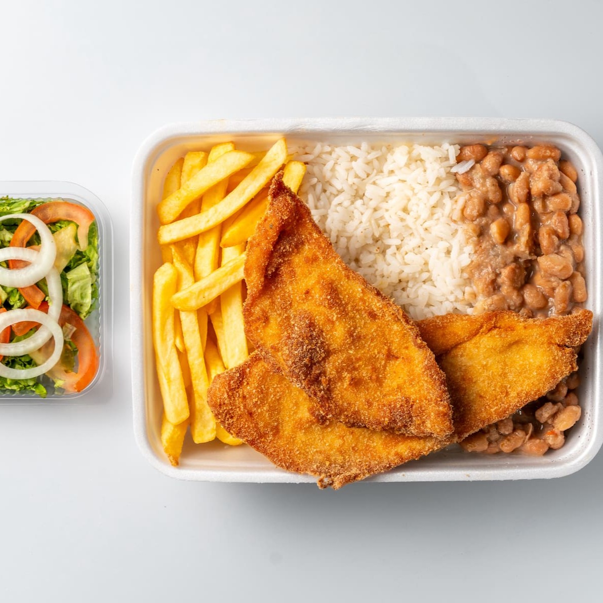 Desfrute do nosso suculento 'Filé de Frango à Milanesa Individual', um prato imperdível disponível em nossa categoria 'Promoção Marmitex com até 50% de Desconto'. Este prato saboroso e generosamente servido vem acompanhado de um arroz soltinho e perfumado, um feijão caseiro cozido à perfeição, além de sua escolha entre uma salada fresca e crocante ou batatas fritas douradas e crocantes. Uma refeiç