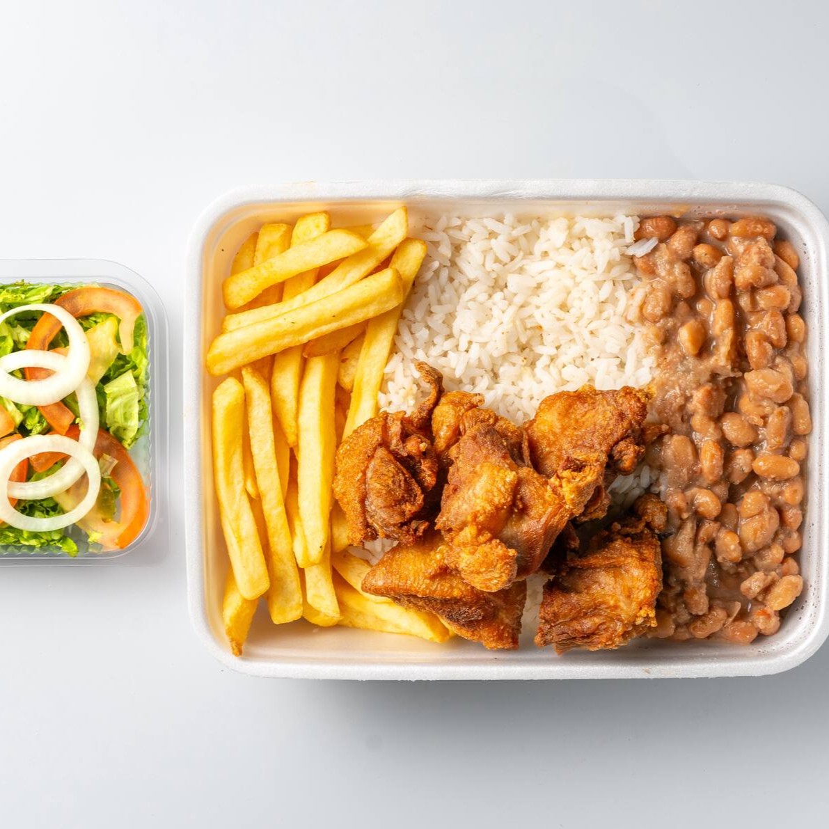 A 'Marmita-Frango a passarinho 2 pessoas' é um incrível banquete saboroso, perfeitamente adequado para duas pessoas. Esta delícia culinária apresenta pedaços de frango a passarinho, fritos à perfeição, exalando um aroma irresistível. Acompanha um arroz branco soltinho e um feijão caseiro recheado de sabor. Você tem ainda a opção de complementar a sua refeição com uma salada fresquinha, trazendo um