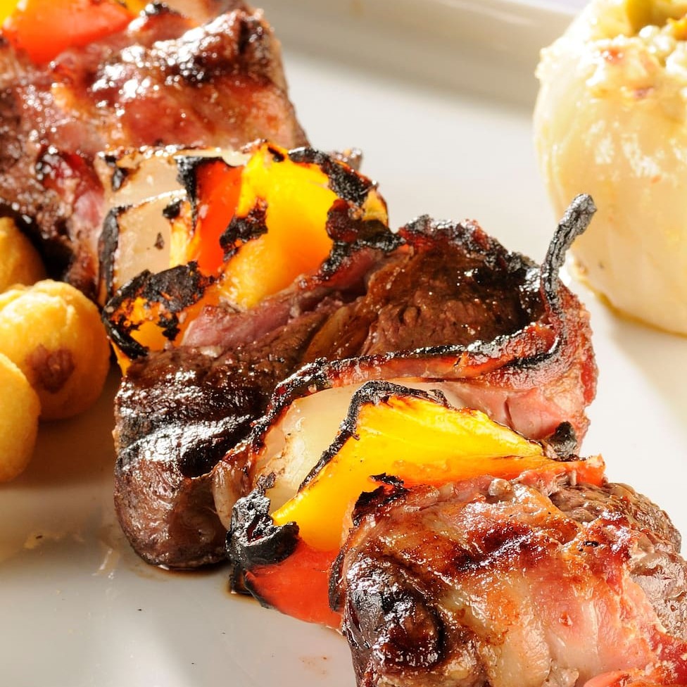 Ancho No Espeto (aprx. 500g) - Com Pimentão, Bacon E Cebola Grelhada.