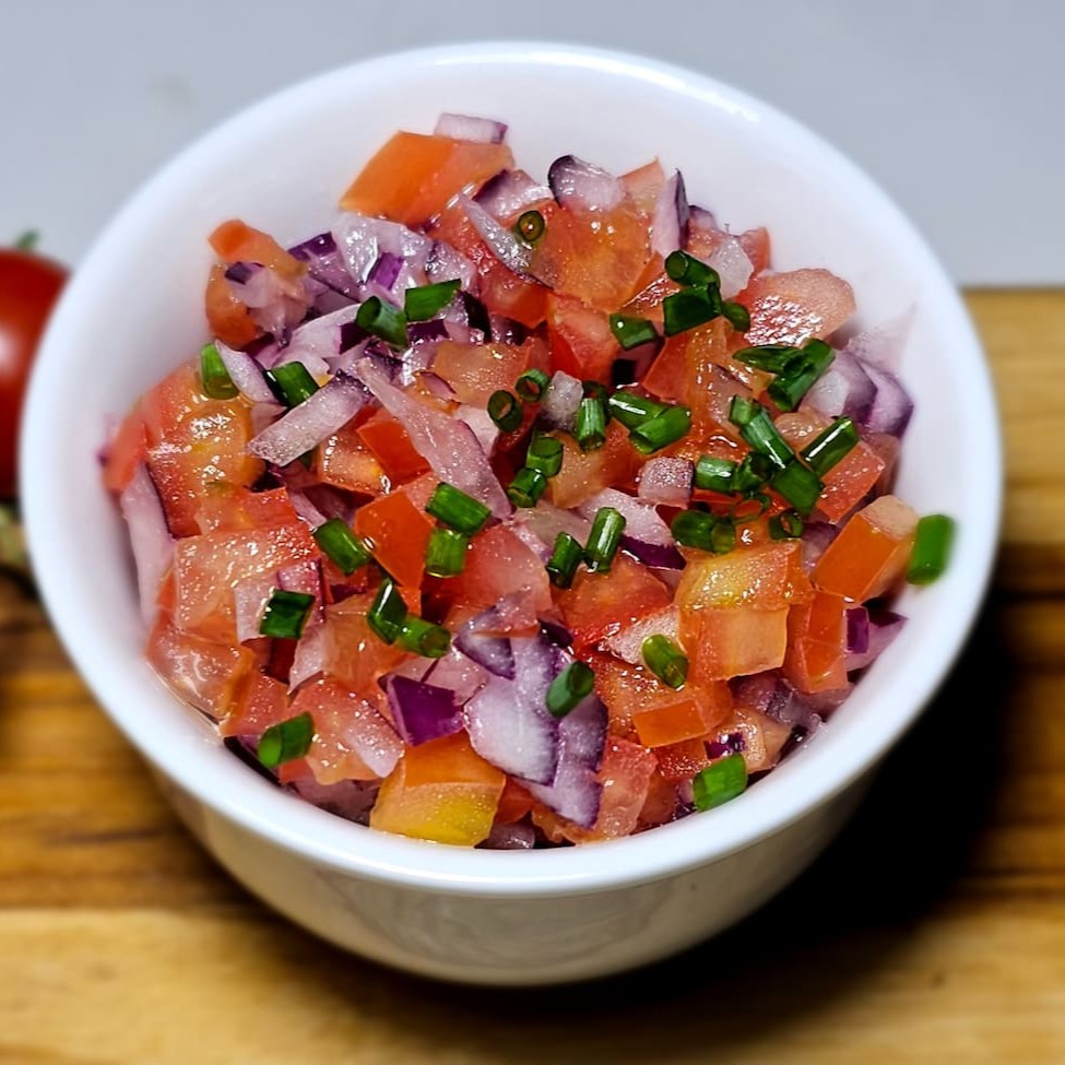 Nosso vinagrete é um adicional essencial para o seu espeto. Irresistivelmente saboroso, é feito com cebola, cebolinha orgânica, tomates selecionados e frescos e azeite de excelente qualidade.