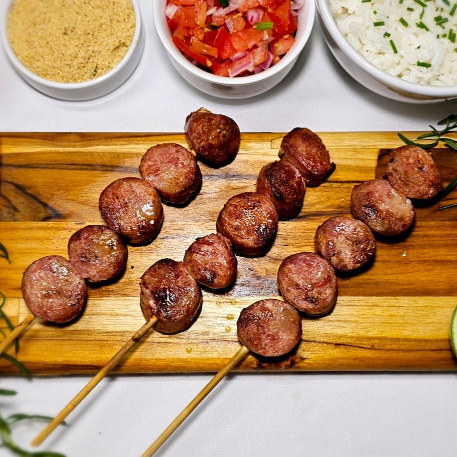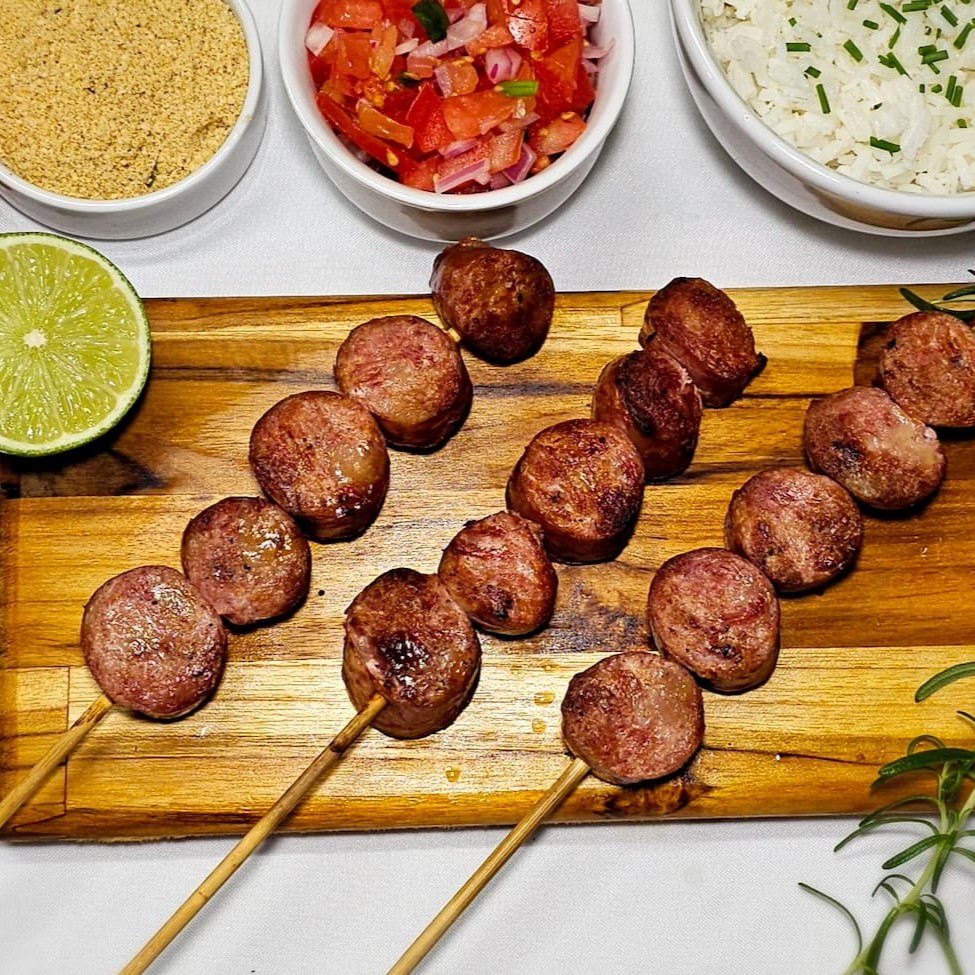 Pão francês fresquinho, com 1 espetinho de Linguiça na Brasa, vinagrete e queijo mussarela derretido. A combinação cheia de personalidade e que agrada todos os paladares.