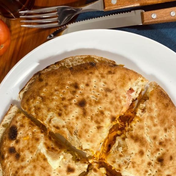 A Clássica Esfiha com massa Artesanal, Queijo Mussarela, Catupiry Original, finalizado com toque de Queijo Gorgonzola.