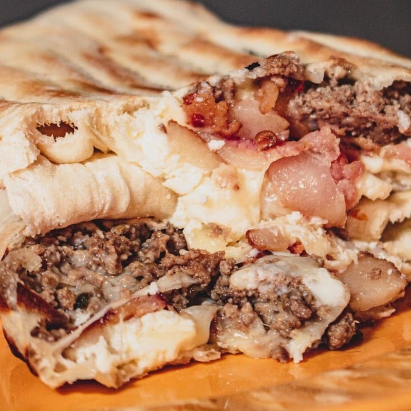 Fogazza recheada com carne moída temperada e cheddar cremoso.