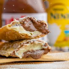 Experimente nosso pastel doce. São três pasteis meia lua 10cm recheado com Ninho e Nutella, peneirado com açúcar com canela. Você vai querer pedir novamente. ExperimenteP