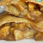 Experimente nosso pastel doce. São três pasteis meia lua 10cm recheado com Banana e doce de leite, peneirado no açúcar com canela. Você vai querer pedir novamente. Experimente