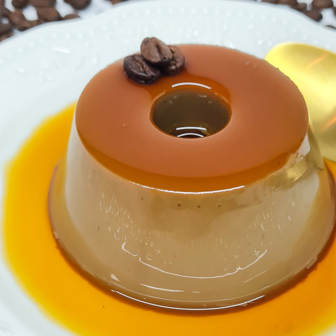 Este é o nosso apetitoso Pudim Café. Um irresistível deleite repleto de sabor, que combina nossa receita especial com o sabor de um delicioso café. Cada colherada é uma jornada de indulgência, tornando difícil resistir a mais uma. Seu paladar será inundado por esta delícia.