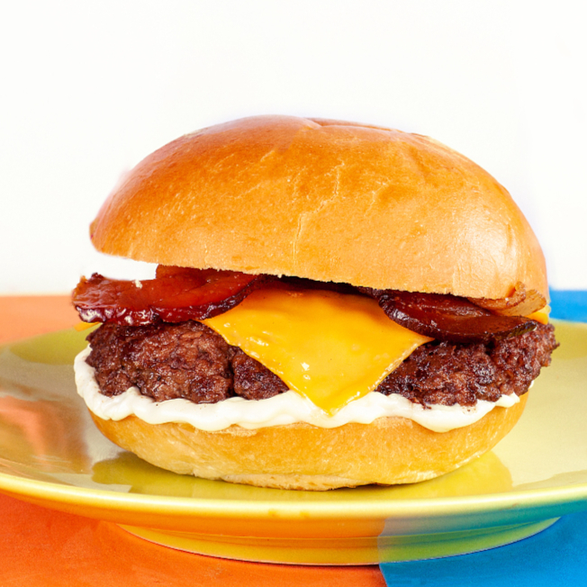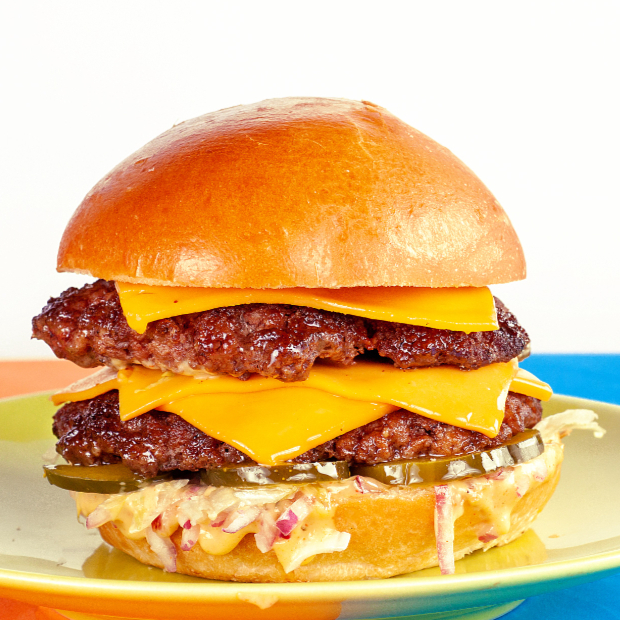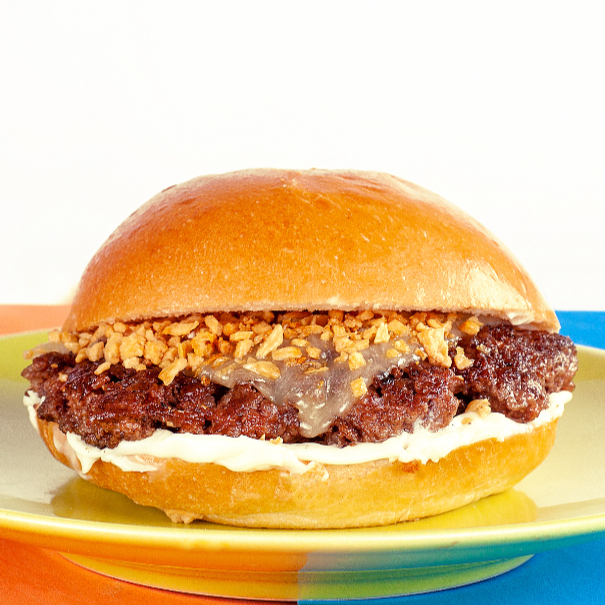 100g de Carne Bovina Suculenta, Queijo Cheddar no Ponto, Cebola Roxa, Farofa de Bacon e nosso Molho Barbecue Artesanal no Pão Brioche. Defumado, Krocante e Cheio de Sabor! Um Burger que Fala Alto no Paladar!