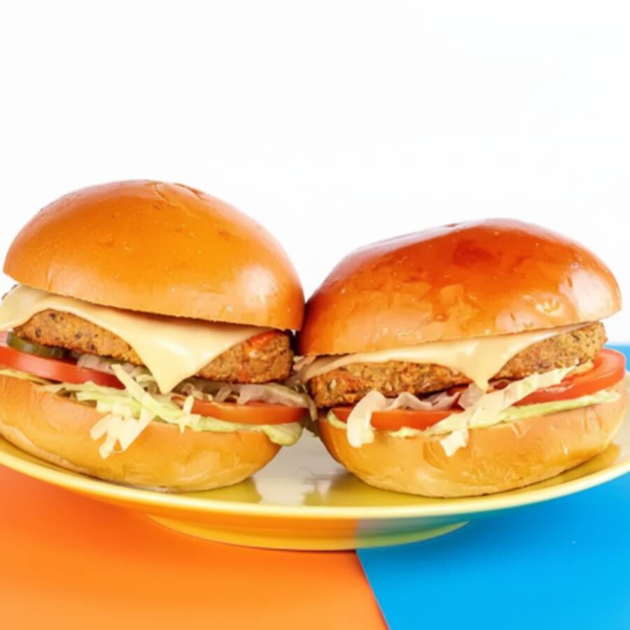 02 Burgers Vegetais de 100g (Grão-de-Bico ou Quinoa), 02 Fatias de Queijo Prato no Ponto, Alface Americana, Tomate e a Nossa Maionese Verde K-10 no Pão Brioche. Porkue Dá Pra Ser Veggie e Goxtoso pra K-10!