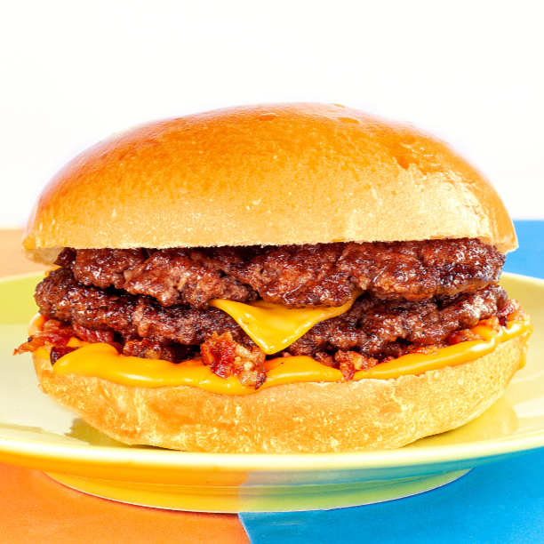 02 Burguers de 100g de Carne Bovina, 02 Fatias de Queijo Prato no Ponto, Cebola Roxa, Ketchup e Mostarda no Pão Brioche. Se um Klássico é Bom, Imagina Com Karne em Dose Dupla!