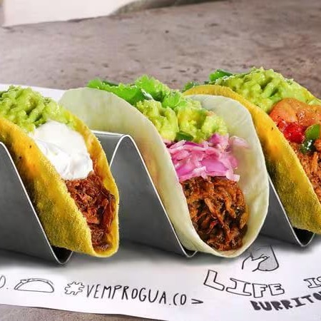 3 tacos com massa crocantuda de milho ou macia de trigo, com 1 recheio e 2 toppings cada. Importante: sugerimos o soft taco para viagem, pois o Gold taco pode perder a crocância na viagem. Nossos produtos são compostos por ingredientes quentes e frios. Por isso, dependendo da sua escolha, pode vir em temperatura ambiente.