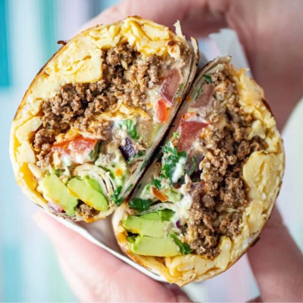 Burrito de pernil defiado suculento ao barbecue defumado com arroz branco, feijão carioca bem temperado ao estilo mex, pico de gallo, salsa ranch de repolho, mussarela e alface, enrolado em uma tortilha de trigo legitima.