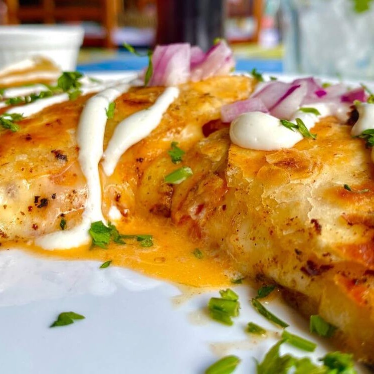 Tortilla de trigo legitima tostadinha, recheada por um sabor a sua escolha.