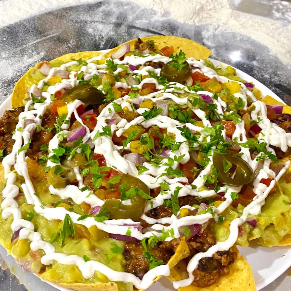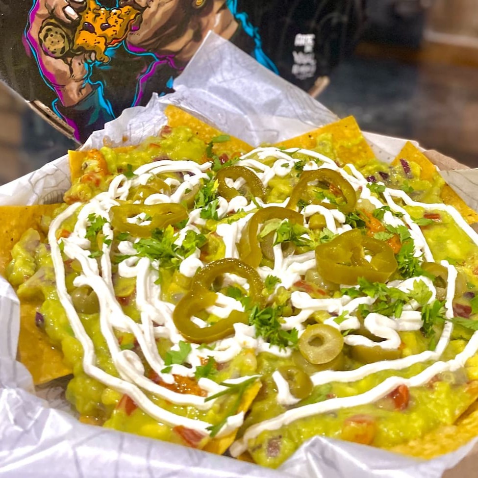 Nachos crocantes, guacamole fresquinho, pico de gallo, Mussarela de primeira, azeitonas, salsa, molho tex-mex, jalapenõs e sour cream. (Se você for um santinho Vegano não esqueça de selecionar a opção vegana, iremos retirar o sour cream e a mussarela.)
