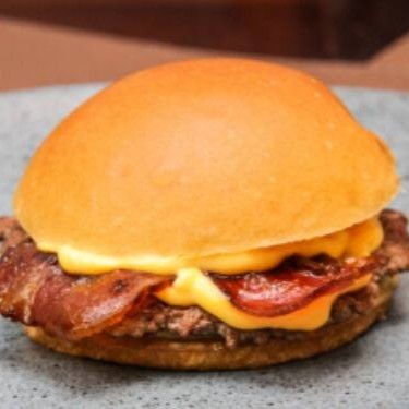 Pão, 100gr de carne, queijo e bacon.