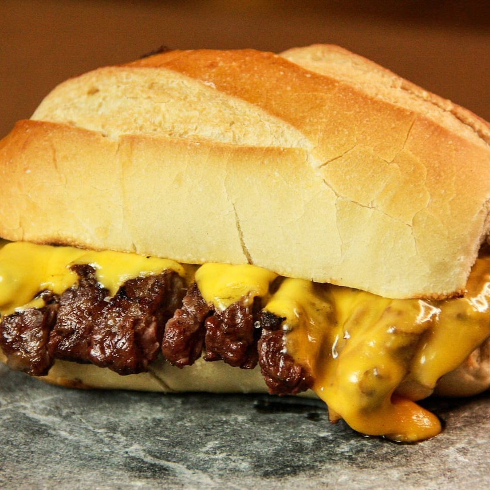 Pão baguete, 200gr de carne, chimichirri e queijo cheddar.
