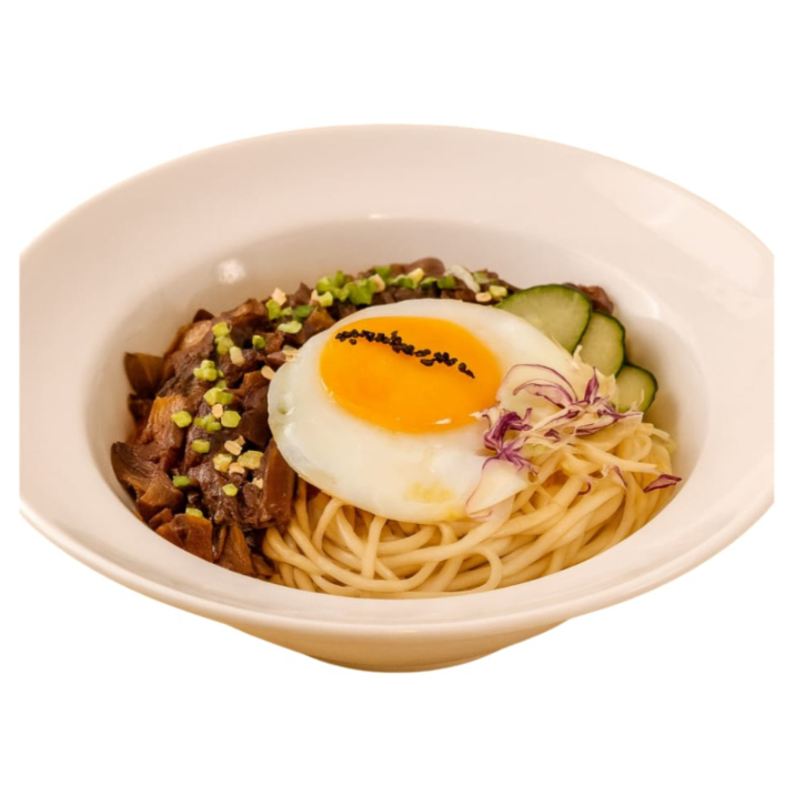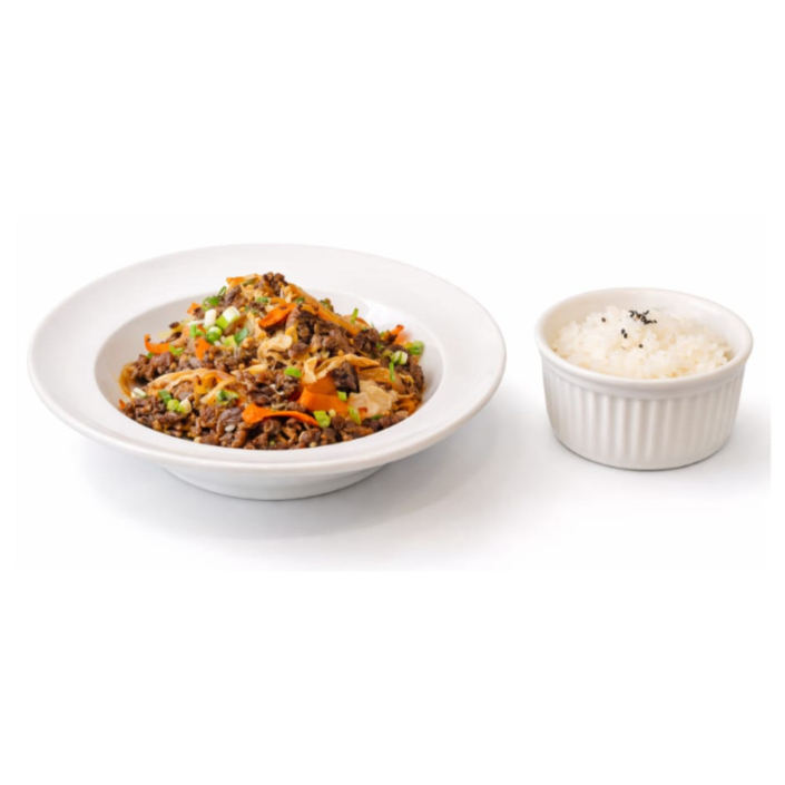 Massa de arroz com contra file marinado + cogumelo marinado ao molho especial de shoyu levemente adocicado com legumes como cebola, cenoura e repolho branco. A combinação perfeita de comida coreana mais querida do mundo!