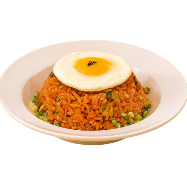 O CONFORTO COREANO MAIS AMADO DO MUNDO Arroz coreano salteado com Kimchi (acelga fermentada levemente picante), finalizado com ovo frito no ponto.