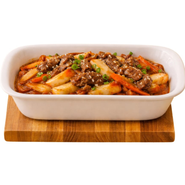Massa de arroz com contra file marinado ao molho especial de shoyu levemente adocicado com legumes como cebola, cenoura e repolho branco. Uma opção para quem não curte muito pimenta. A combinação perfeita de comida coreana mais querida do mundo!