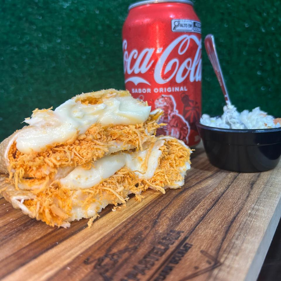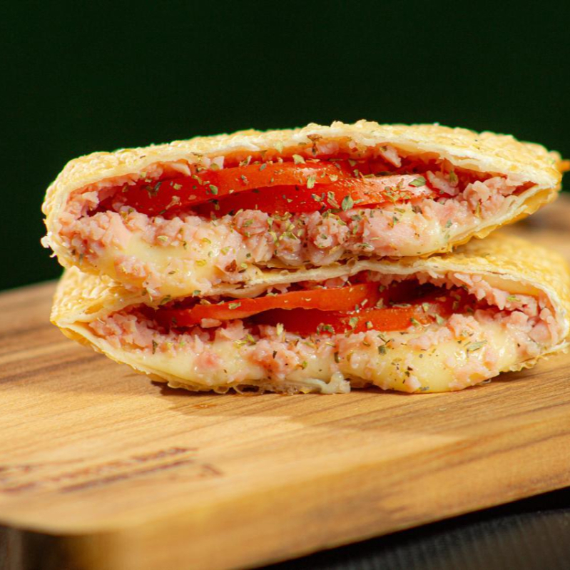 Frango, Milho, Carne, Ovo, Cheddar, Catupiry. (32cm ABERTO/ 16cm FECHADO)