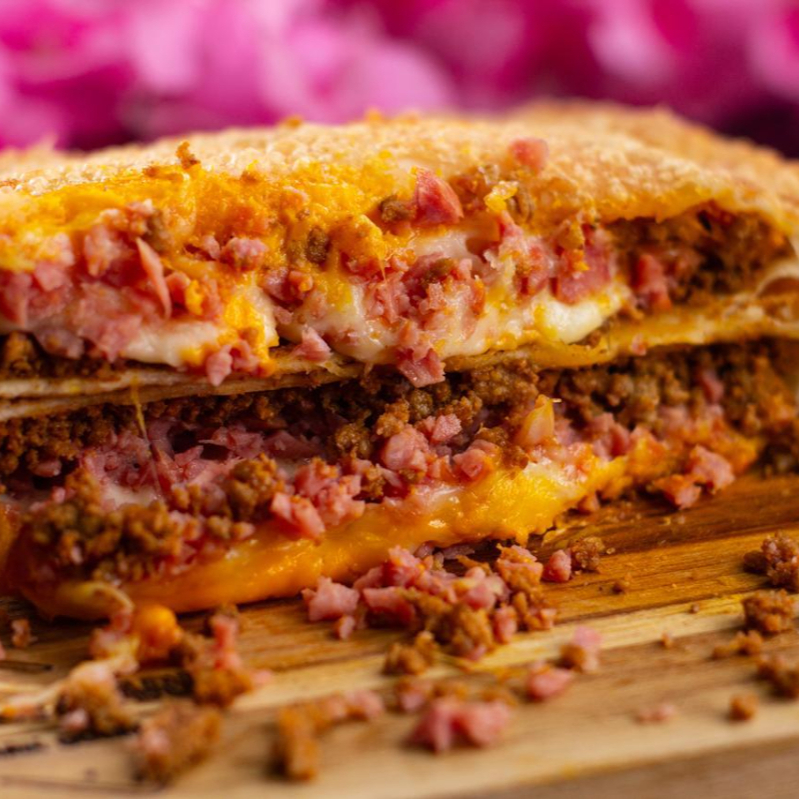 Carne, calabresa, queijo, azeitona, ovo, catupiry. (32cm ABERTO/ 16cm FECHADO)