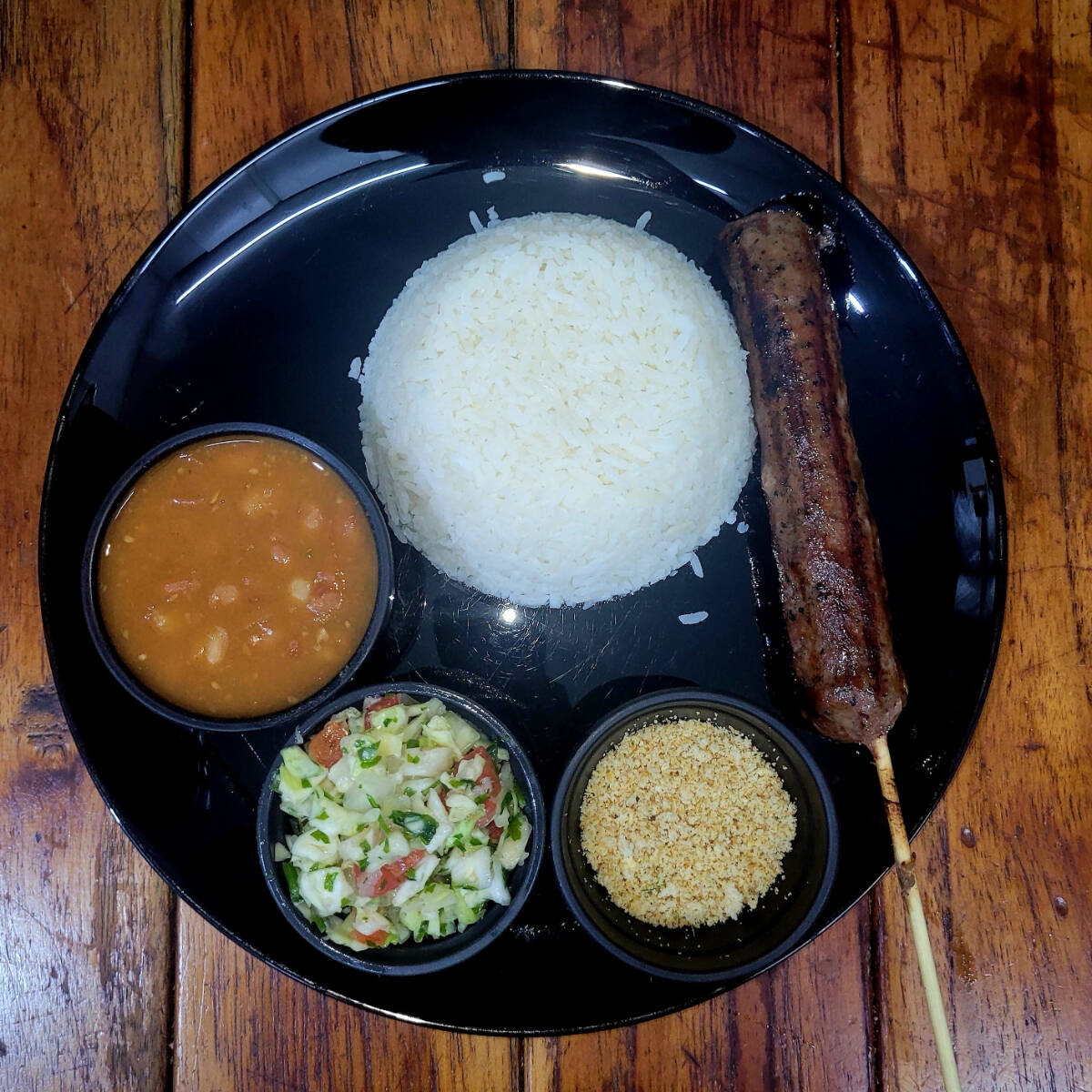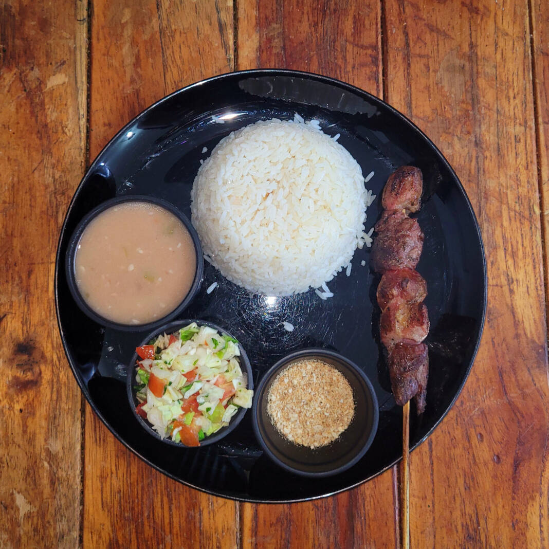 Jantinha, Arroz, Feijão, Farofa, Vinagrete E Espetos