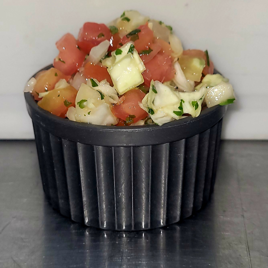 Um delicioso vinagrete feito com, repolho, tomate, cebola e salsa