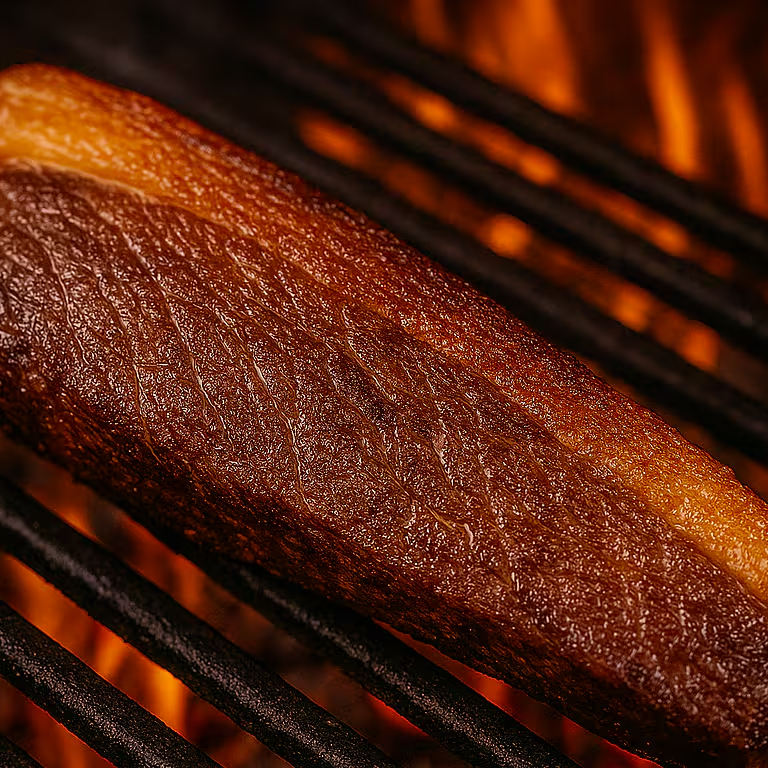 Desfrute do nosso 'Espeto de Salmão Assado na Brasa', um prato principal da categoria 'Espetos Assados Premium'. Este espeto é meticulosamente preparado e assado no carvão, exatamente do jeito que você aprecia. Pronto para ser consumido, ele é cuidadosamente acondicionado em uma embalagem especial que garante que ele se mantenha aquecido por até 40 minutos a mais, tornando-o perfeito para o seu la