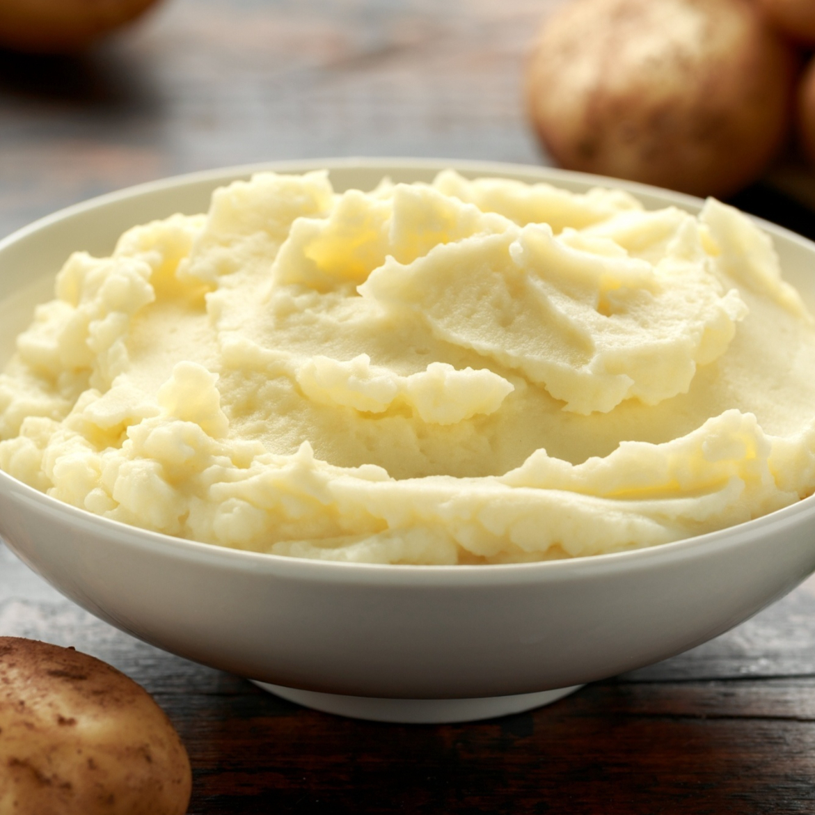 Delicioso e clássico purê de batata, cremoso feito com batatas selecionadas, manteiga e sal.
