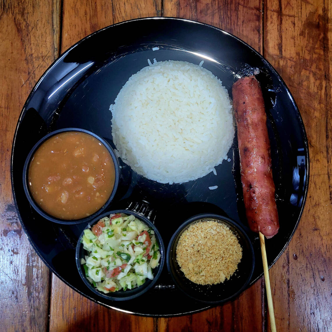 Nosso executivo acompanha o melhor arroz e feijão que você vai comer em muito tempo, farofa artesanal deliciosa, um maravilhoso vinagrete e um delicioso espeto de toscana assado na brasa. #churrasco #executivo #almoço #toscana #almoço #jantinha