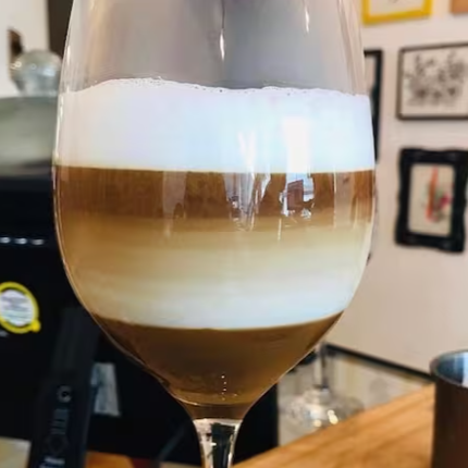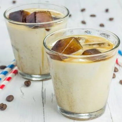Uma dose de espresso leite cremoso gelado.