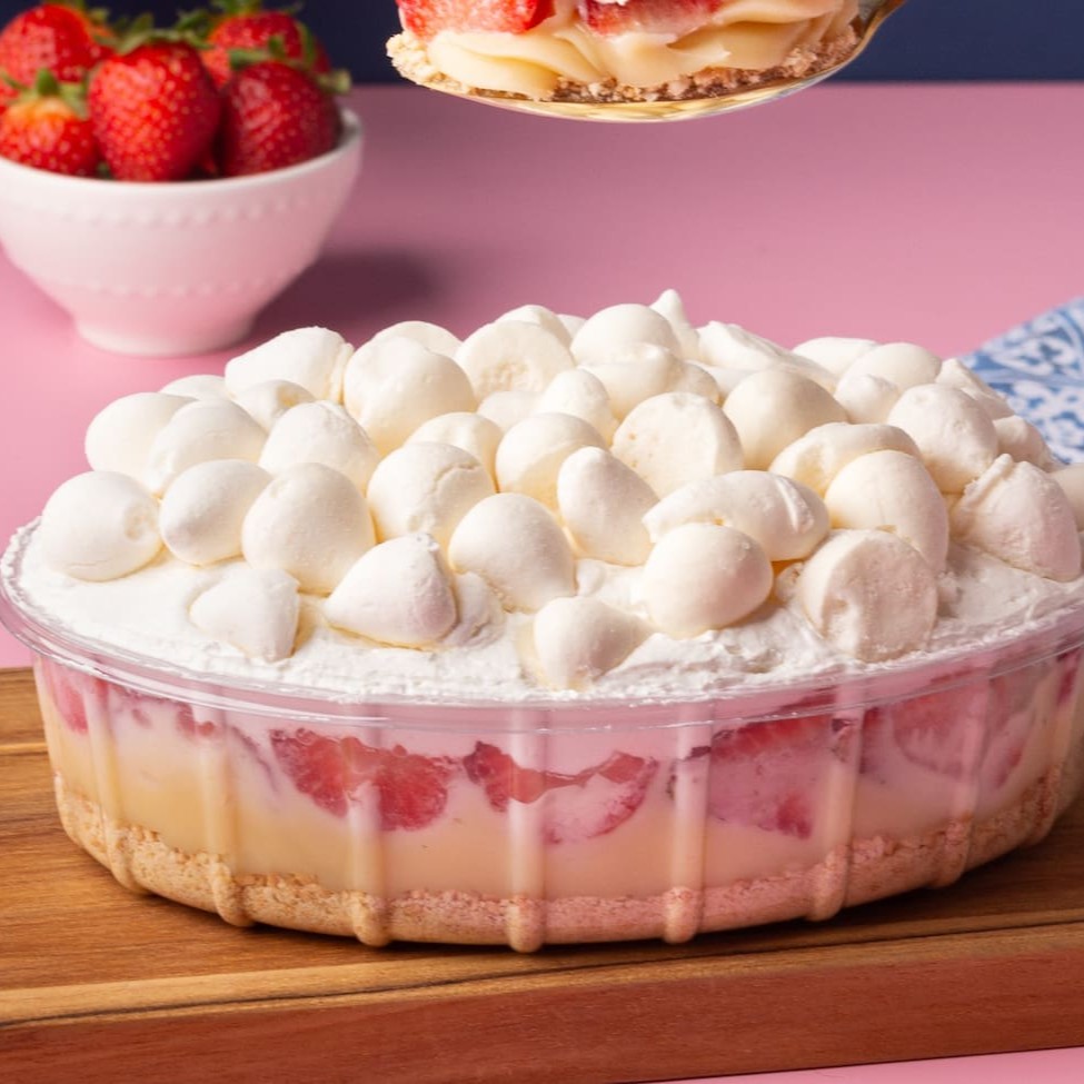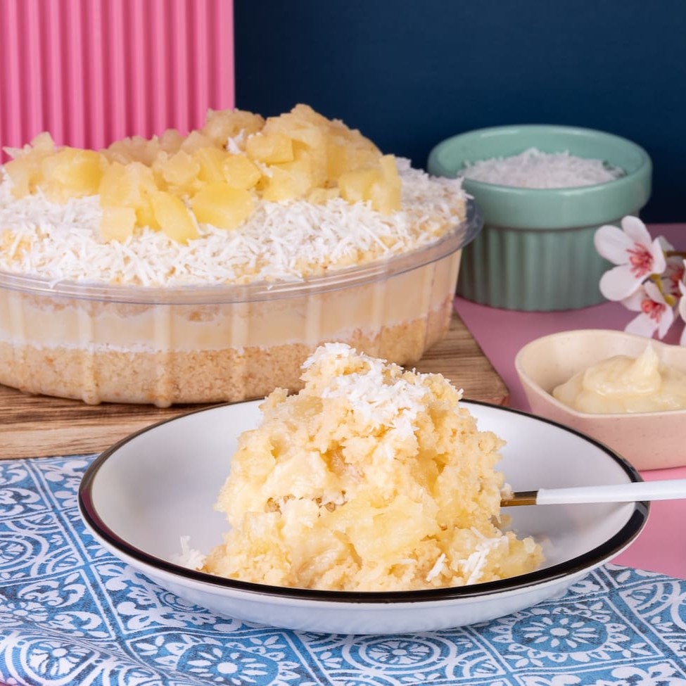 O nosso bolo gelado mais pedido, agora na versão com abacaxi. Nossas sobremesas são preparadas na hora, bem fresquinhas especialmente para você. Recomendamos o consumo imediato. Pesos aproximados: Travessa Pequena, partir de 600g (aproximadamente 4 porções de 150g) Travessa Grande, a partir de 1,3 kg (aproximadamente 8 porções de 150g)