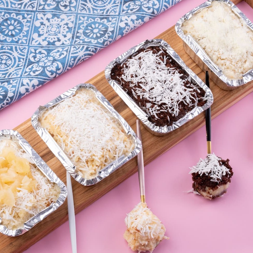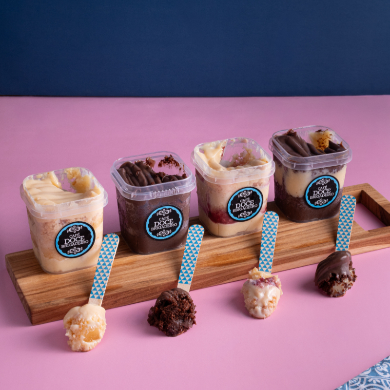 Combo com 4 deliciosos bolos gelados para você escolher os seus favoritos e aproveitar. Servidos em marmitinhas de 135ml Porção pequena, 140g cada.