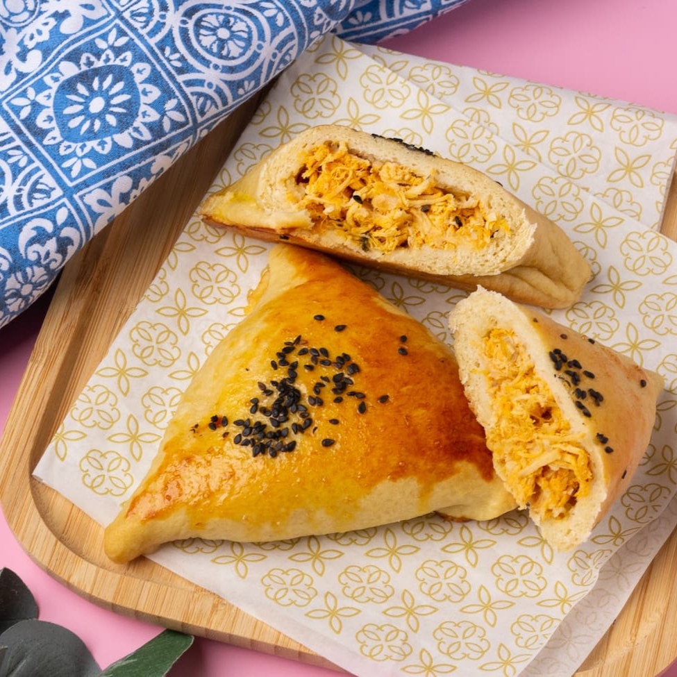 Deliciosa esfiha de frango com Catupiry Original. Aproximadamente 100g