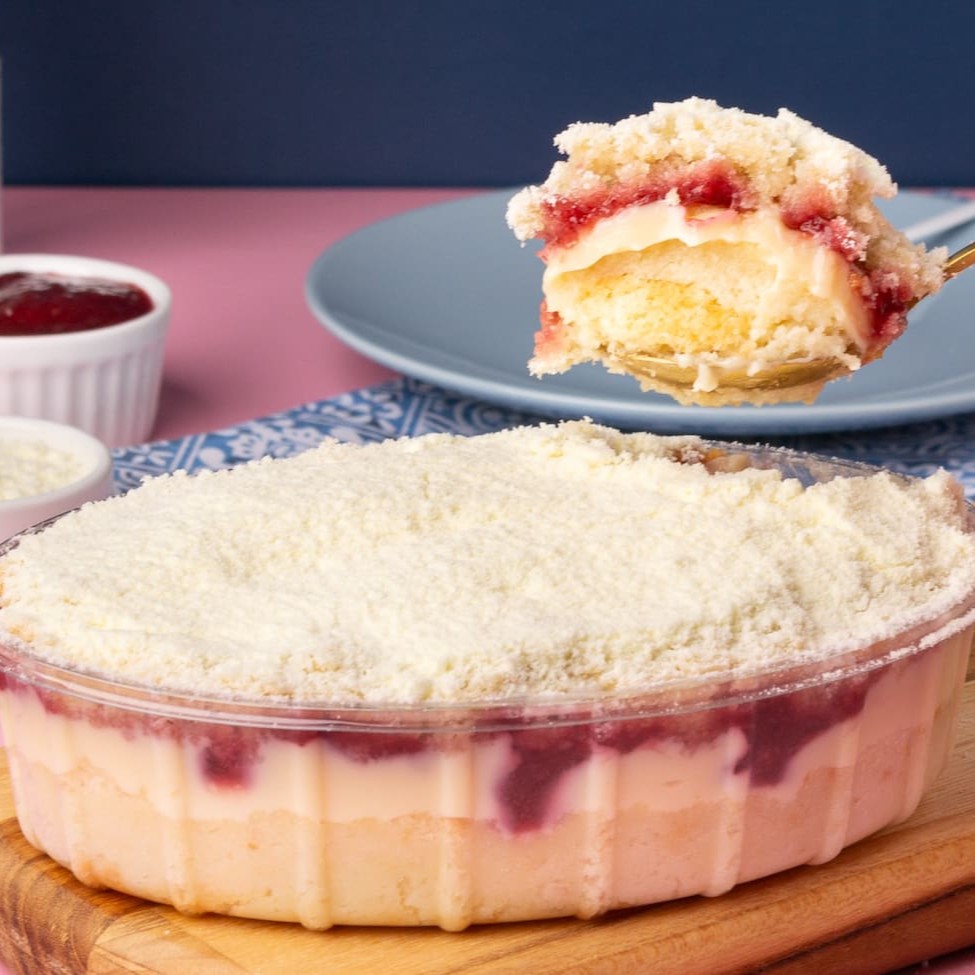 Massa tradicional bem molhada, recheio de brigadeiro de Ninho, calda artesanal de morango e leite em pó. Nossas sobremesas são preparadas na hora, bem fresquinhas especialmente para você. Recomendamos o consumo imediato. Pesos aproximados: Travessa Pequena, a partir de 600g (aproximadamente 4 porções de 150g) Travessa Grande, a partir de 1,3 kg (aproximadamente 8 porções de 150g)