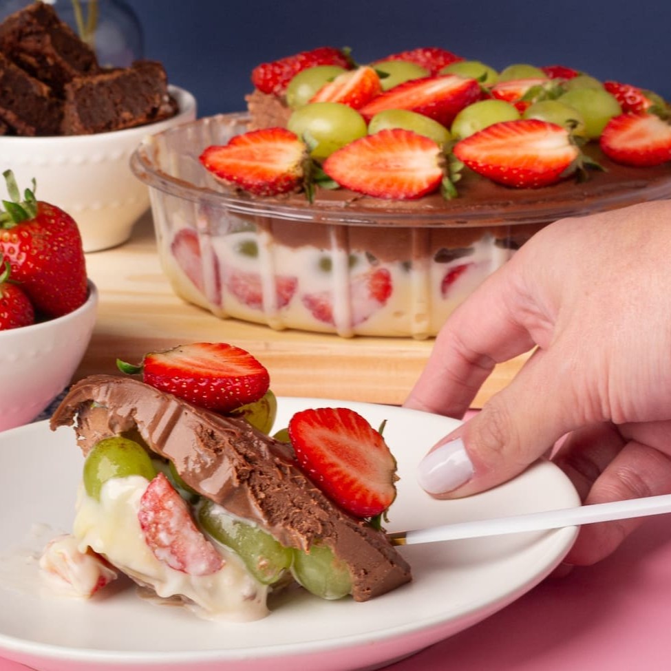 Essa sobremesa é uma verdadeira celebração de sabores e texturas. O brigadeiro cremoso, os pedaços de morangos e uvas frescas se unem harmoniosamente, enquanto a ganache de chocolate nobre eleva a experiência a outro patamar de indulgência. Cada colherada é um convite para se perder em um mundo de prazer e satisfação. Permita-se desfrutar dessa criação suculenta e deixe-se levar por essa deliciosa