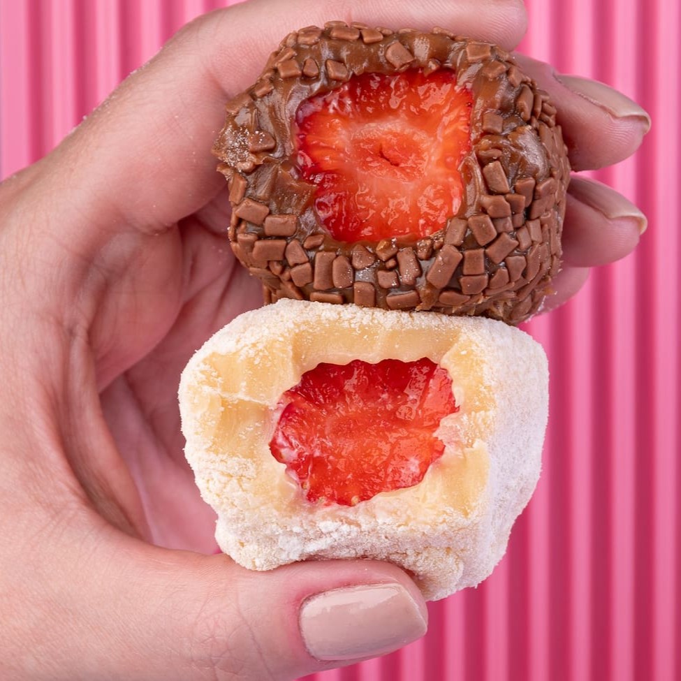 Morango fresco e suculento, cuidadosamente selecionado para garantir a máxima qualidade e sabor, envolto em nosso delicioso brigadeiro ao leite ou leite Ninho. Escolha nas opções.