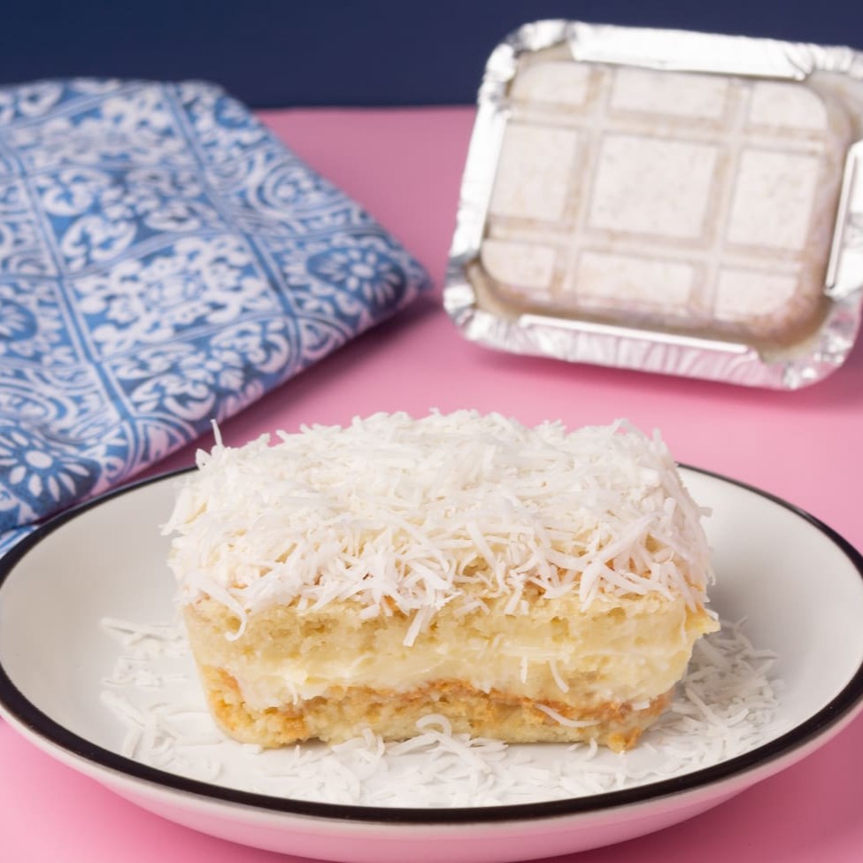 Massa tradicional bem molhada, recheio de brigadeiro com coco (beijinho) e coco em flocos. A mesma receita, agora nos tamanhos médio e grande. Escolha o seu e aproveite Nossas sobremesas são preparadas na hora, bem fresquinhas especialmente para você. Recomendamos o consumo imediato. Pesos aproximados: Travessa Pequena, a partir de 600g (aproximadamente 4 porções de 150g) Travessa Grande, a pa