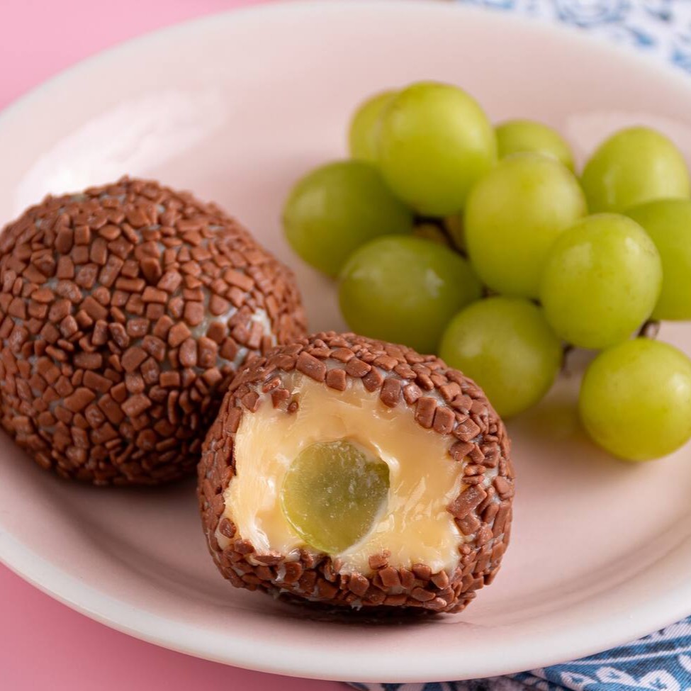 Uvas verdes frescas e selecionadas, envoltas em nosso brigadeiro cremoso de Ninho. Finalizado com granulado belga Callebaut, que traz um toque crocante e sofisticado a cada mordida.