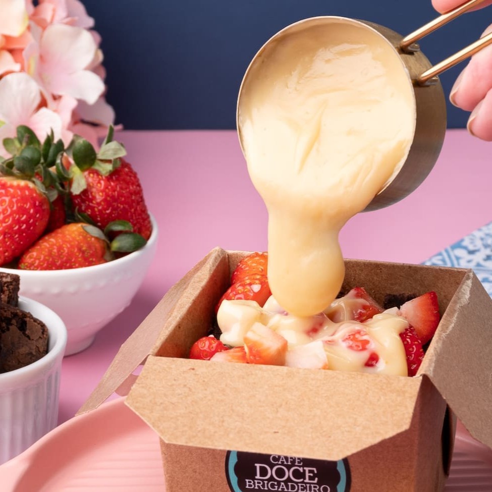 Prepare-se para uma experiência inigualável com nosso delicioso Fondue de Brigadeiro. Aproveite com sua melhor companhia. Contém: Pedaços de brownie, 4 brigadeiros, uva, morangos e brigadeiro quente.