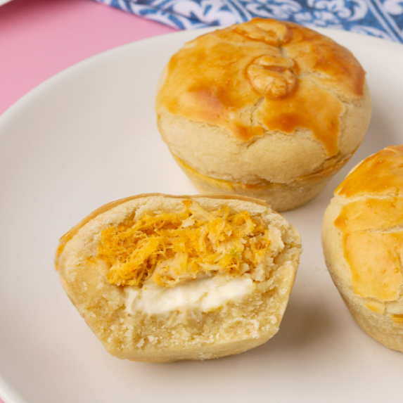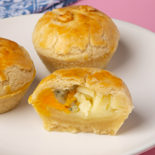 Deliciosa massa amanteigada recheada com mussarella, catupiry, cheddar e gorgonzola.