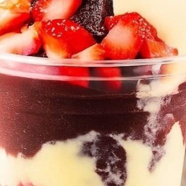 Açaí cremoso sabor morango com leite condensado e leite Ninho. Embalagem 300ml