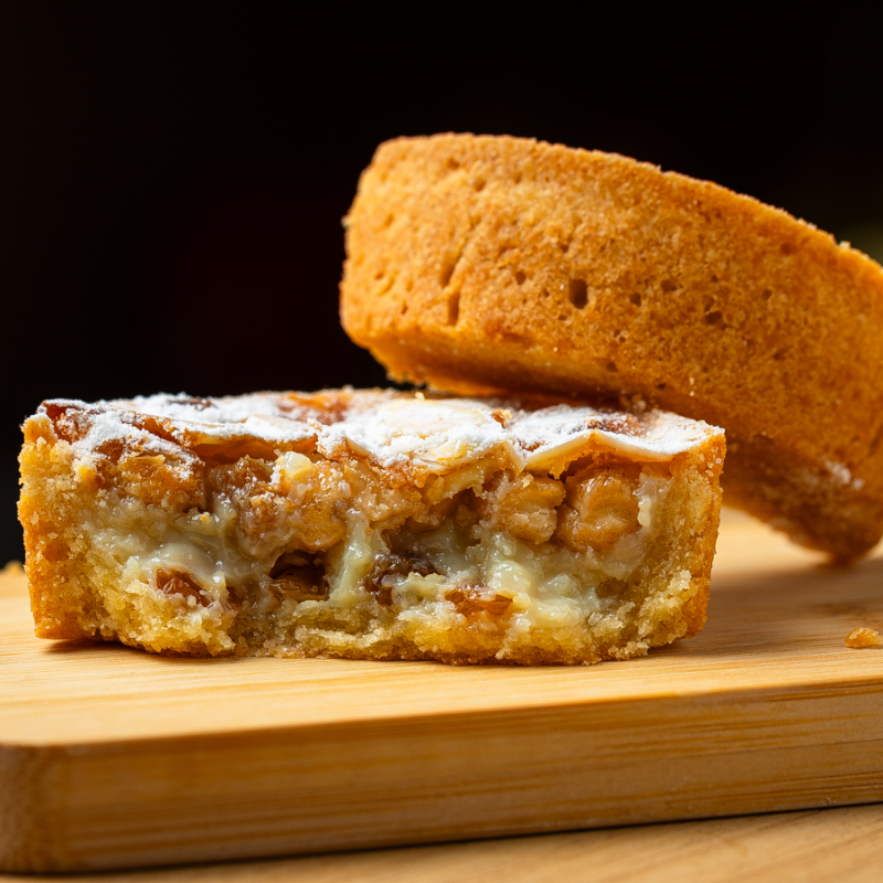 Tortinha com base amanteigada crocante, recheio delicado de nuts selecionadas e frutas secas, levemente caramelizadas. Ideal para acompanhar um café.