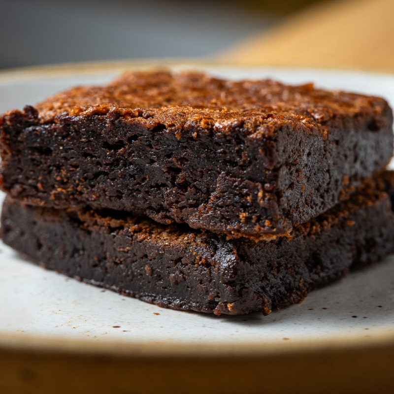 Brownie tradicional com intenso sabor de chocolate e textura macia.