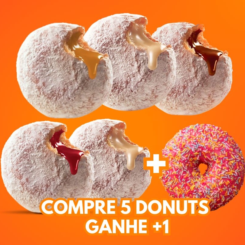 Compre 5 Donuts Rechados e leve mais 1 de brinde. Exceto Nutella
