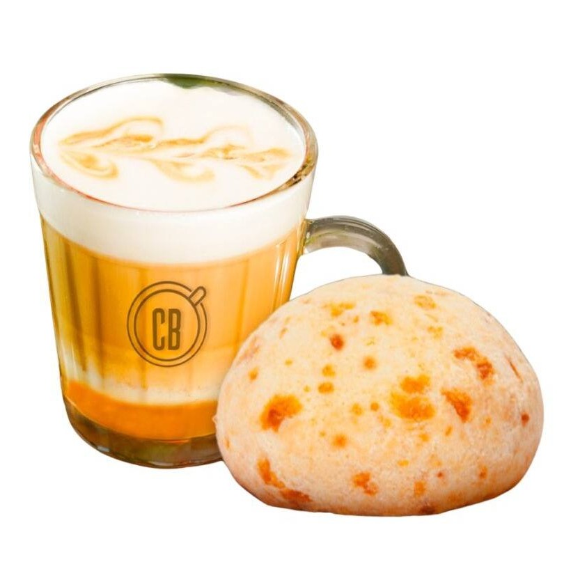 Pão de queijo crocante por fora e macio por dentro + pingado cremoso com um toque de caramelo.