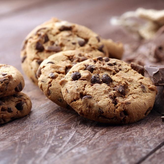 Cookie sabor baunilha com gotas de chocolate.