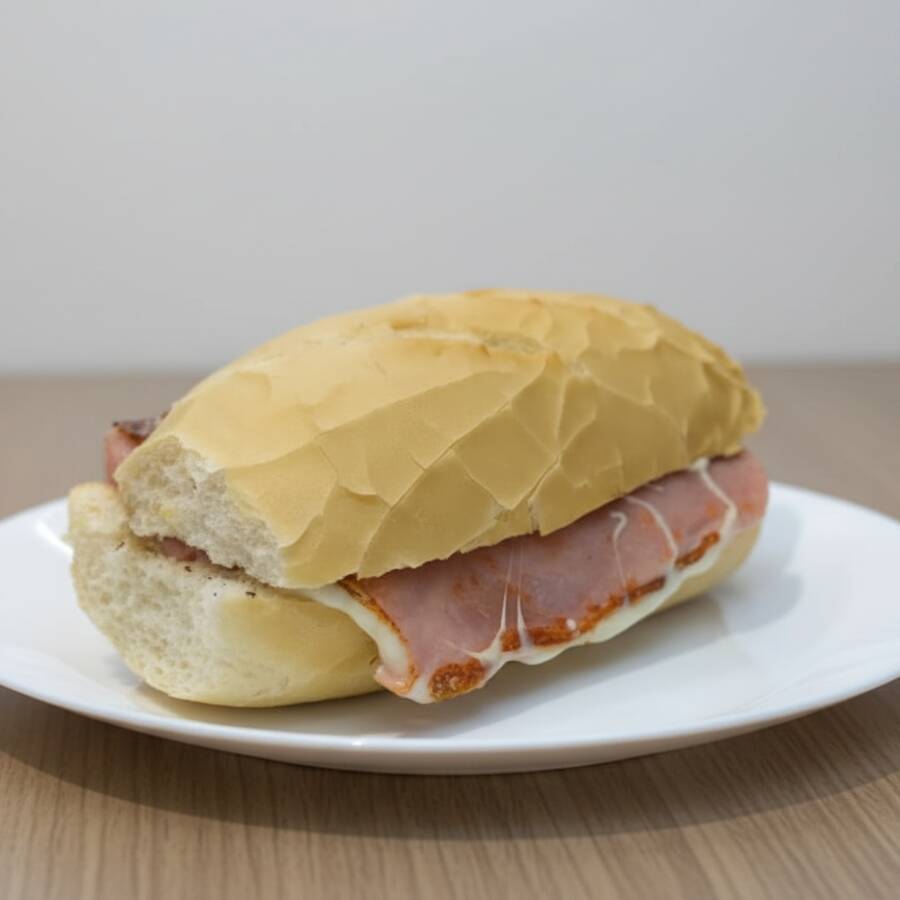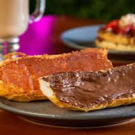 Pão francês com uma fatia com requeijão Catupiry tostado na chapa e outra fatia com manteiga tostado na chapa e finalizado com Nutella. Serve 1 pessoa